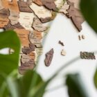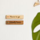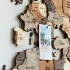 De houten 3D-kaart voegt persoonlijkheid toe aan je muur. Gebruik de groene pinnen om de reeds bezochte bestemmingen te markeren en rode voor de nog te ontdekken bestemmingen.
